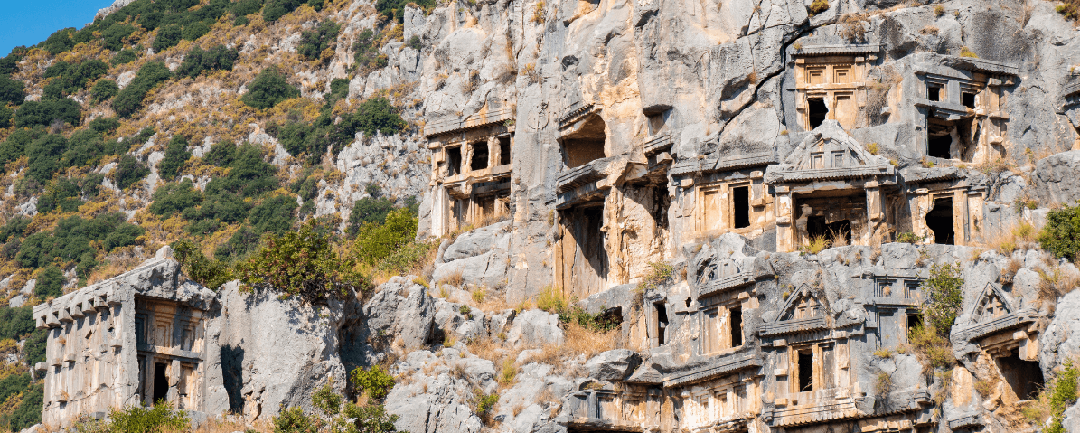 - Myra Kaya Mezarları: Likya dönemine ait bu mezarlar, antik kentin en dikkat çekici ve önemli yapılarından biridir. Kaya yüzüne oyularak yapılan bu mezarlar, Likya uygarlığının özgün kaya mezar geleneğini yansıtmaktadır. Mezarlar, kabartma ve friz süslemeleriyle de dikkat çekmektedir.